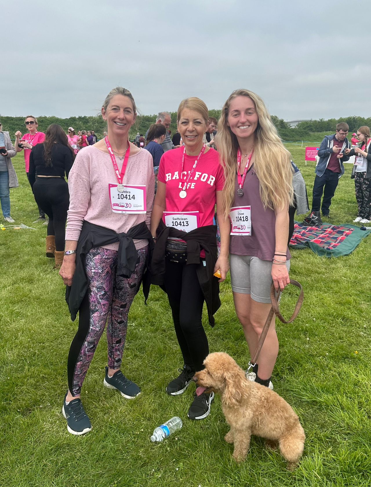 We’re really proud of Chloe Nicholls (with Nala the Cockapoo), Claire Cotterill and Debbie Green, who all took part in Race For Life at Garons Park, Southend, a couple of weeks ago. Together they raised more than £300. Terrific effort!